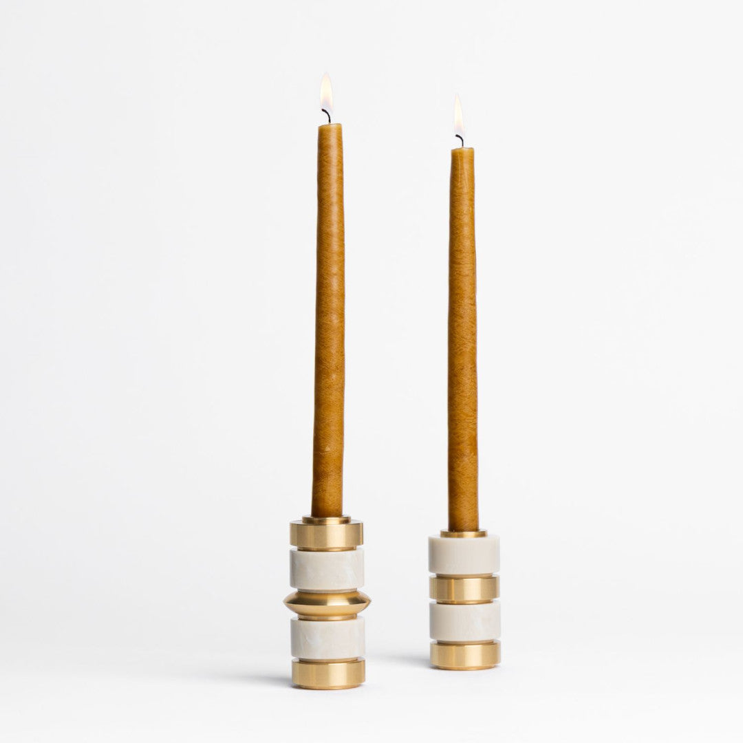 Ces bougeoirs sont spécialement conçus pour accueillir nos bougies chandelles classiques (⌀ 2,2 cm), fabriquées artisanalement et disponibles dans une large palette de couleurs.