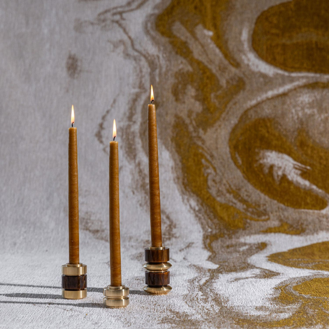 Le bougeoir DANDY a été pensé comme un véritable élément de composition décorative. Empilable, il s’associe parfaitement aux bougeoirs en laiton de la collection Songe – modèles 1950, 1970 et PALACE – pour former des totems personnalisables, des tours de bougeoirs sculpturales à composer selon vos envies.