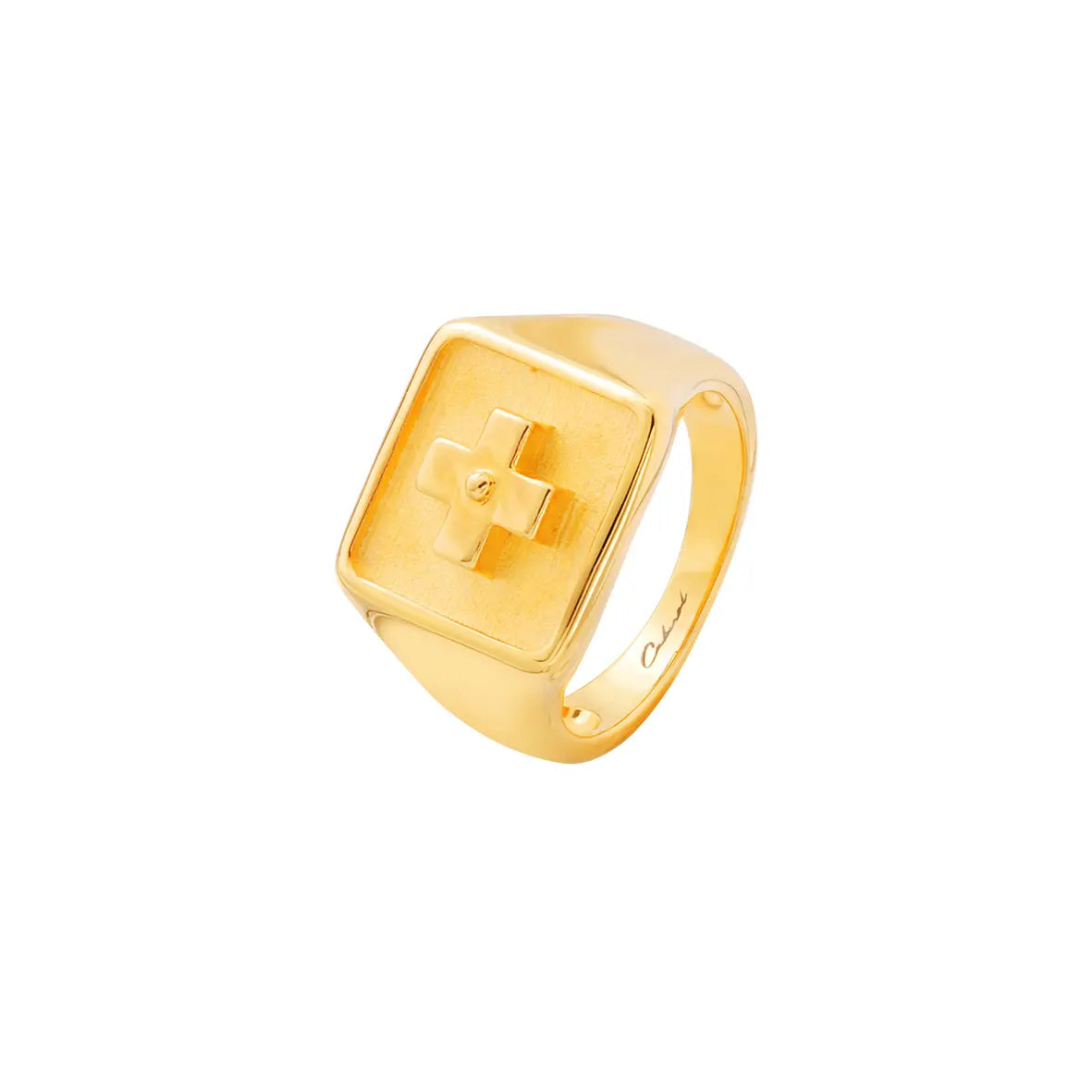 Chevalière Destin en vermeil, or 18K sur argent 925, le centre sablé.