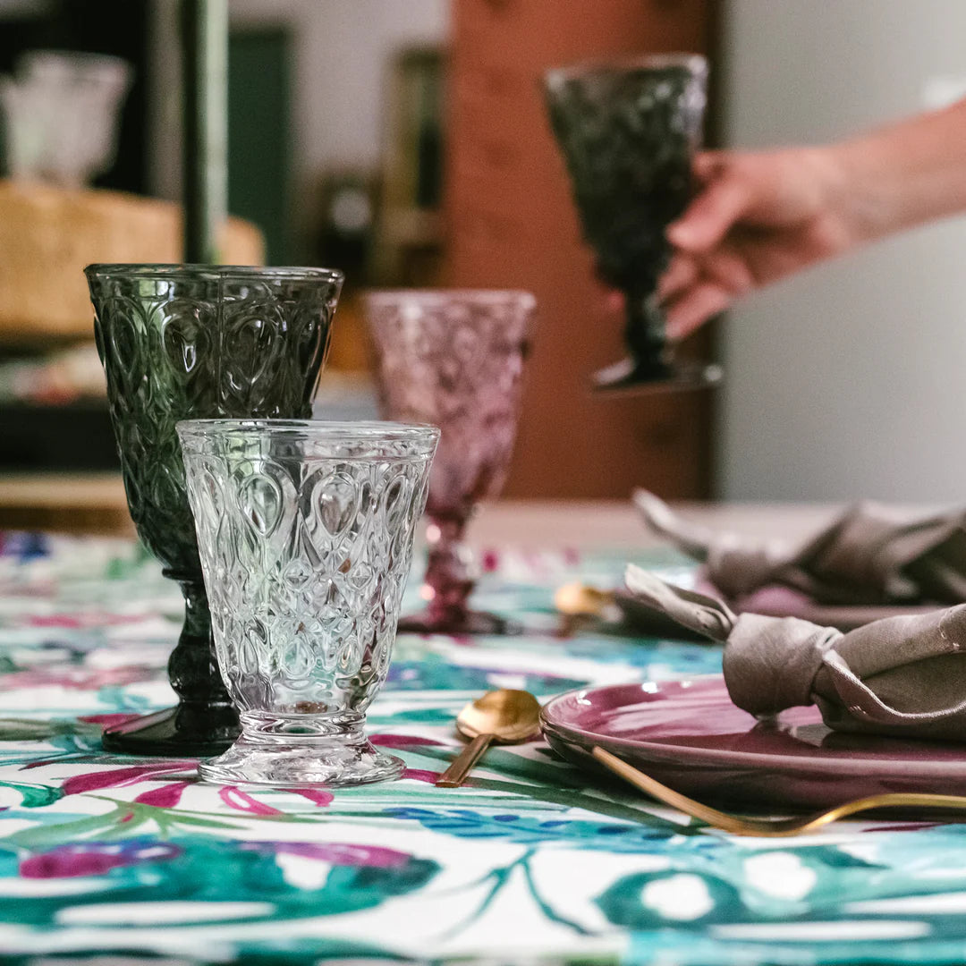 Gobelet en verre pressé Petit pied bas. Paraison ornée de reliefs inspirés des motifs précieux de la Renaissance. D'après les collections 19ème de LA ROCHÈRE.